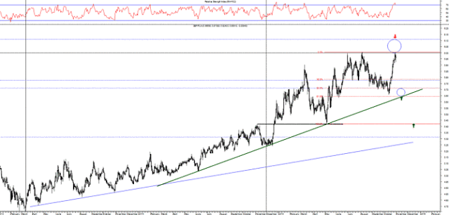 Z kolei zejście kursu poniżej poziomu 5,65 (linia trendu wzrostowego z genezą w czerwcu 2014 i 61,8% zniesienie odbicia z maja, czerwca i lipca) zmieniłoby trend na spadkowy w średnim terminie i pozwoliłoby na ruch przynajmniej do poziomu 5,43 (geneza na wykresie).